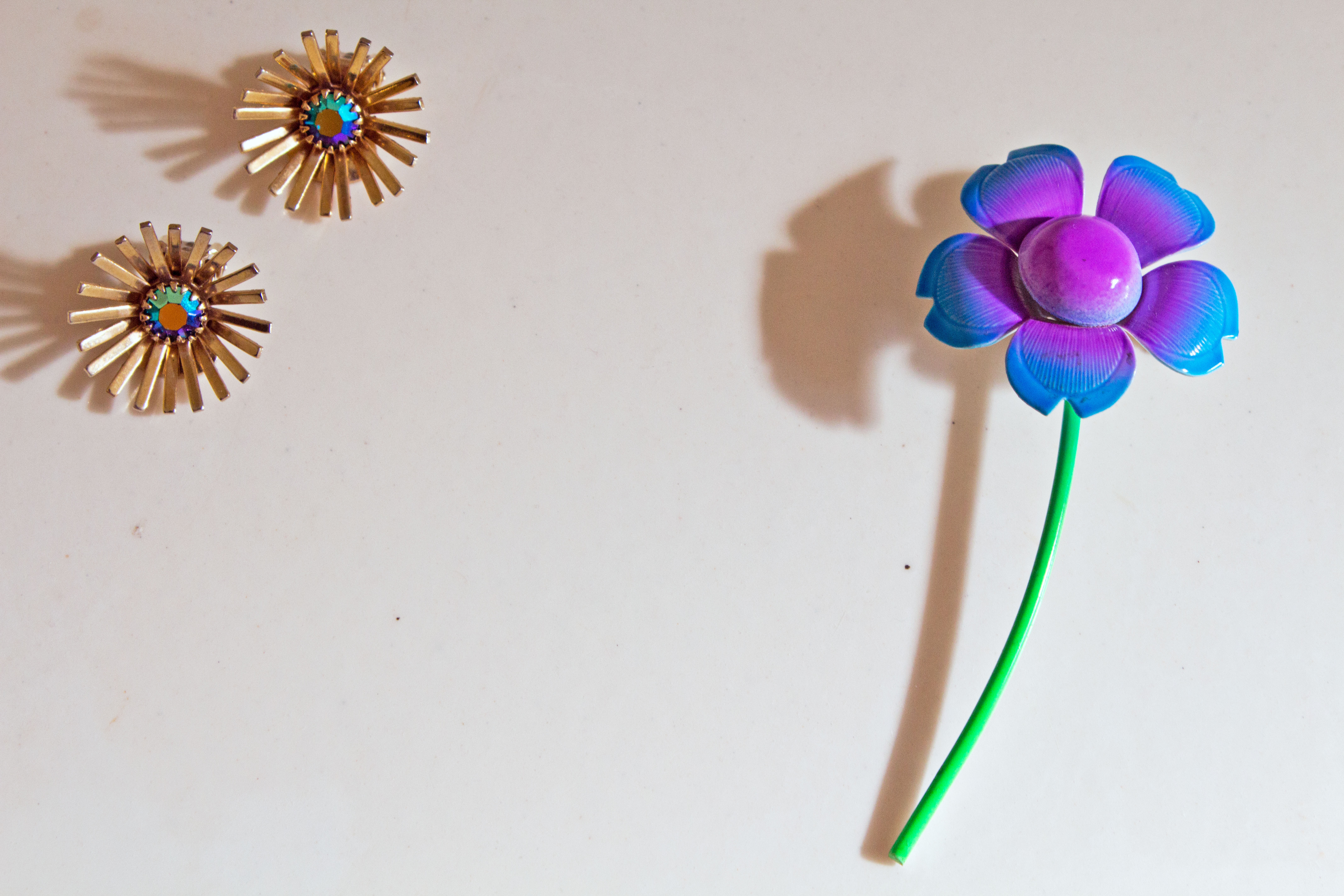 We also spent some time antiquing and thrifting and I found some funky little treasures that I am so excited to wear! I was drawn to the long thin stem of the flower pin and the vibrant colors. The clip-on burst earrings are absolutely perfect to wear with almost anything, particularly the retro inspired dresses I just bought. Stay tuned for those outfit posts!