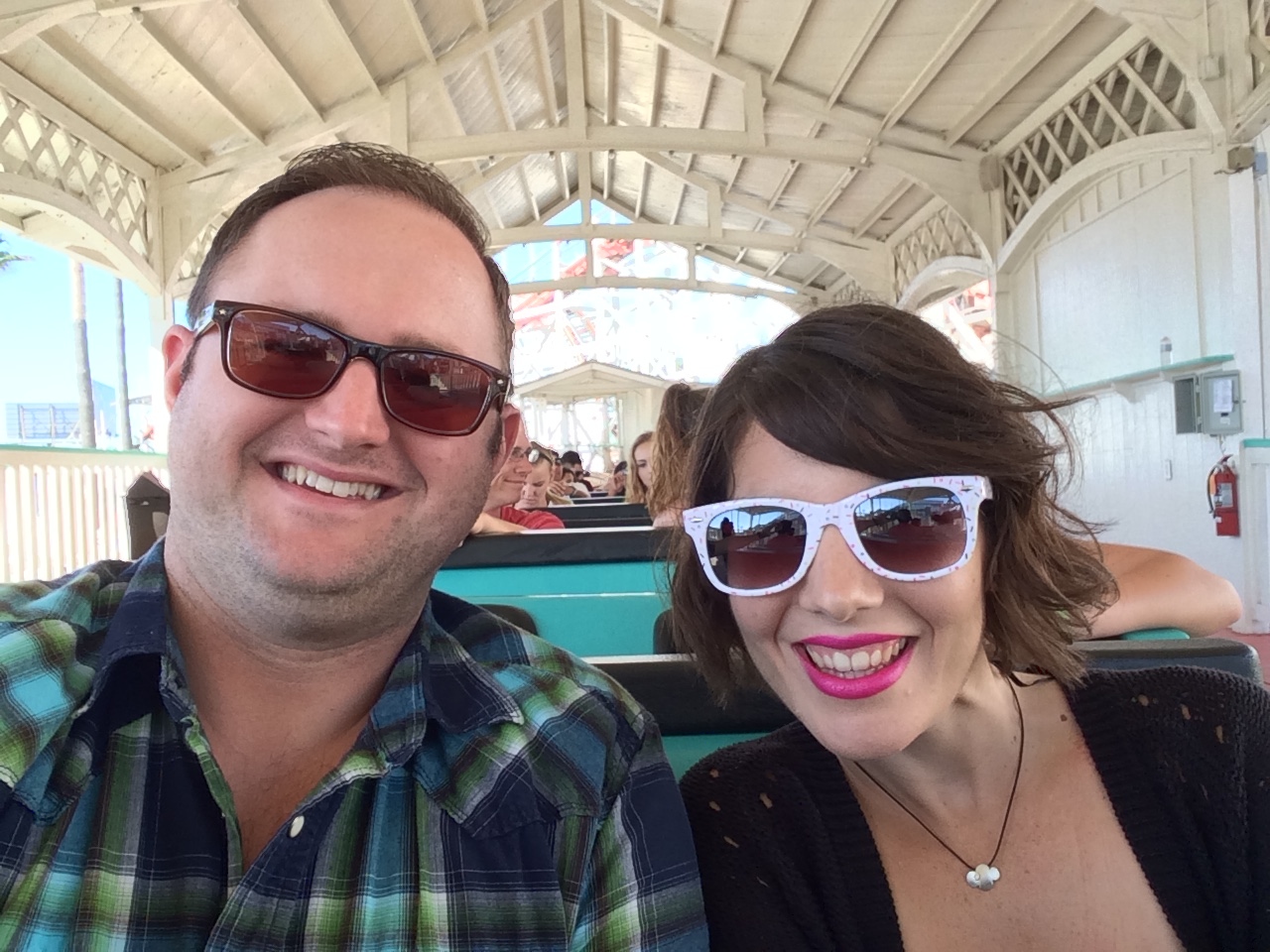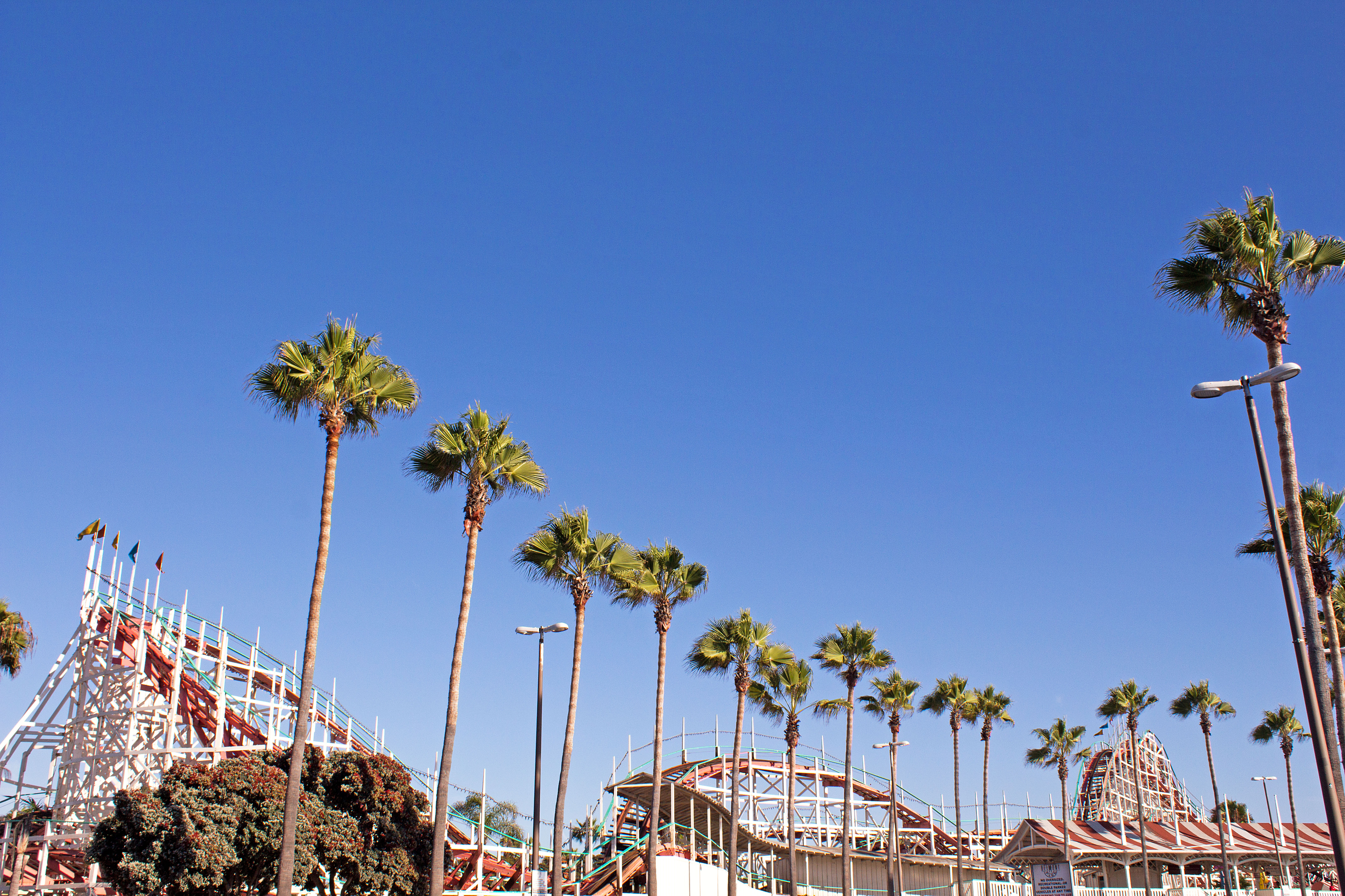 While in San Diego, Jason and I visited Belmont Park at Mission Beach. The highlight of Belmont Park is their historic wooden roller coaster, Giant Dipper. Built in 1925, it is one of two remaining wooden roller coasters on the West Coast built by Arthur Looff and designed by Frederick Church. Church also designed Tornado, a wooden coaster once in operation in Coney Island in Brooklyn, New York.